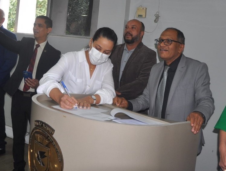 Participaram da solenidade os vereadores Marinaldo Cardoso, Dr. Valdé, Fabiana Gomes e Moisés Morais, além do diretor de Recursos Humanos da Câmara, José Neto, e o procurador jurídico da Câmara, Luiz Philippe Pinto.