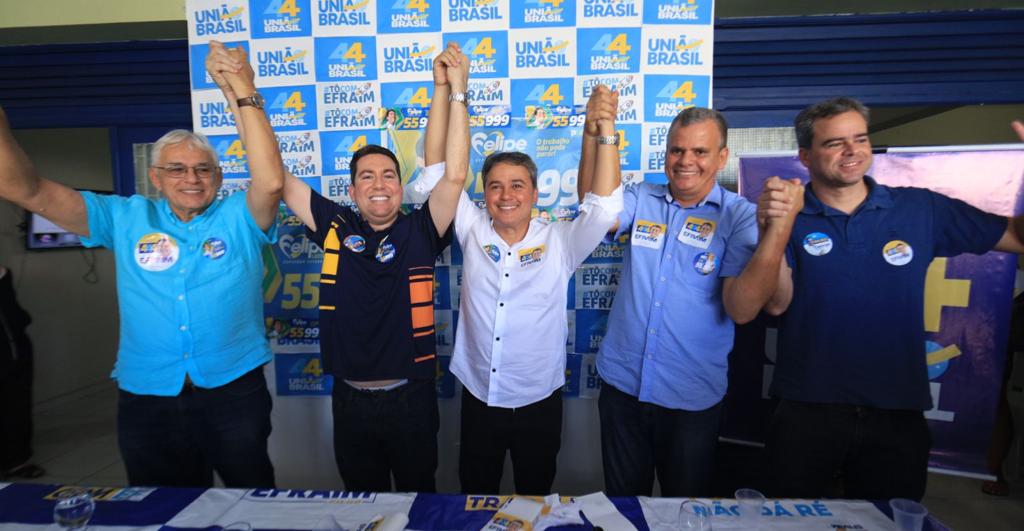 Juntamente com Felipe, o candidato a estadual, Emerson Machado (PSD), esteve no evento e disse que escolheu estar ao lado de Efraim por saber que ele é ficha limpa: “Os da tornozeleira eletrônica ficam do lado de lá. Vou com Efraim porque sei que ele será o melhor senador que a Paraíba já viu”. Emerson finalizou sua fala fazendo um pedido inusitado: “Meus seguidores, não precisa nem votar em mim, vote em Efraim que eu tô feliz!”.