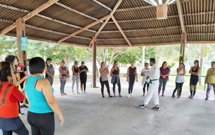 Dentro da programação do Agosto Lilás, A Prefeitura de Campina Grande, por meio da Coordenadoria Executiva da Mulher, promoveu, na manhã desta sexta-feira, 19, no Parque da Criança, um curso de Defesa Pessoa exclusivo para mulheres. O curso foi ministrado pelo agente da Guarda Municipal Carlos Falcão, contando com o apoio do também guarda Municipal, Rosilberto Moura.