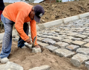 Em seguida, a prefeita foi para a comunidade Chã do Marinho, cujo setor ganhou atenção da prefeitura e uma das principais ladeiras da comunidade recebe a obra de pavimentação.