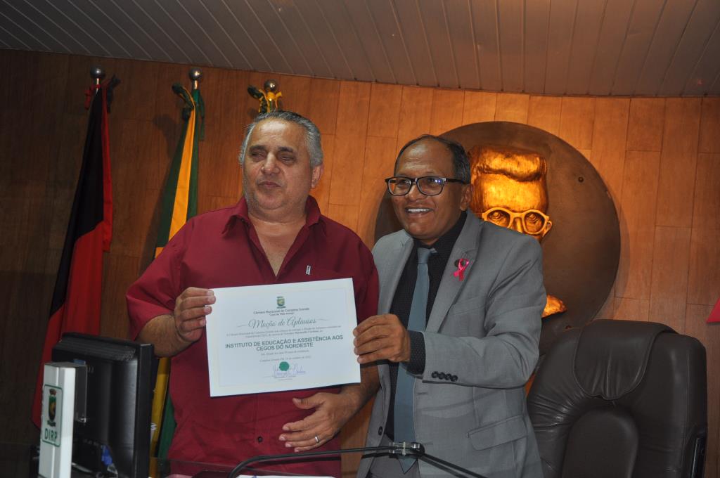 O presidente Marinaldo Cardoso, fez a entrega de uma Moção de Aplausos ao presidente do Instituto dos Cegos, John. Agradeceu a todos os presentes e encerrou a sessão especial.