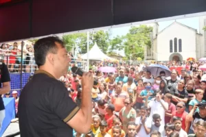 A festa começou às 08h, e teve show do Baby Shark, Galinha Pintadinha, de palhaços e de mágica. Do início ao fim foram feitos sorteios, com entrega de bicicleta, bonecas, carrinhos, triciclo e diversos outros brindes.