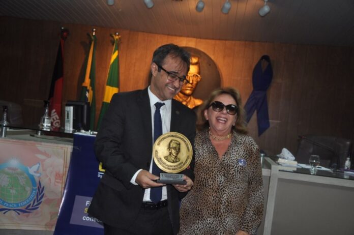 A Câmara Municipal de Campina Grande, realizou na sexta-feira (18), sessão solene de entrega de Medalha de Honra ao Mérito Municipal, à senhora Arizaneide Araújo Leite, presidente da Organização Brasileira de Mulheres Empresárias – OMBE / DELEGAÇÃO AMAZONAS, uma propositura do vereador Waldeny Santana (UNIÃO).