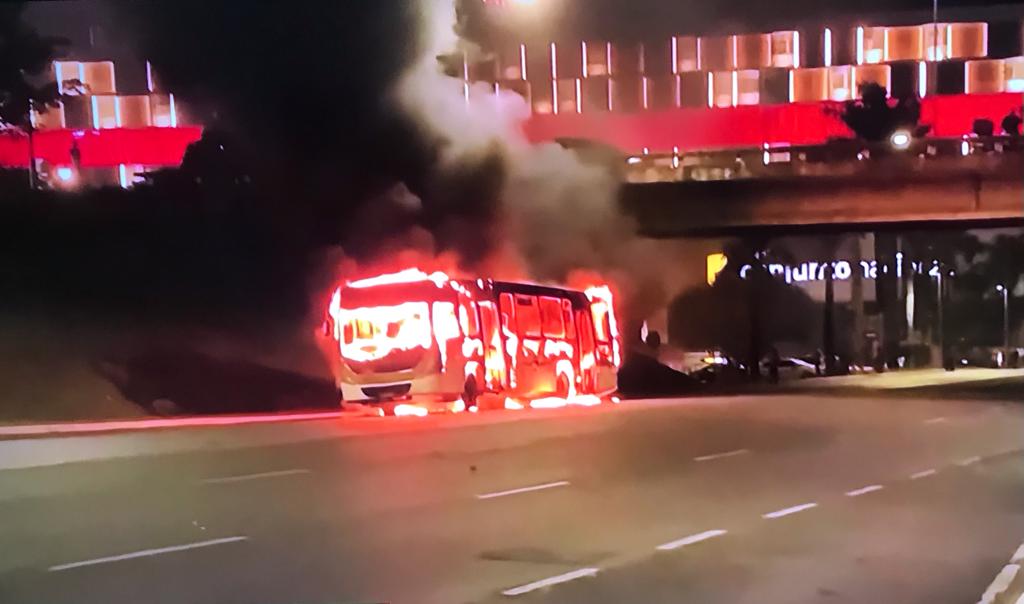 Por volta de 20h40, os manifestantes começaram a atear fogo aos carros estacionados no Setor Hoteleiro Norte. Pelo menos três veículos já foram incendiados.