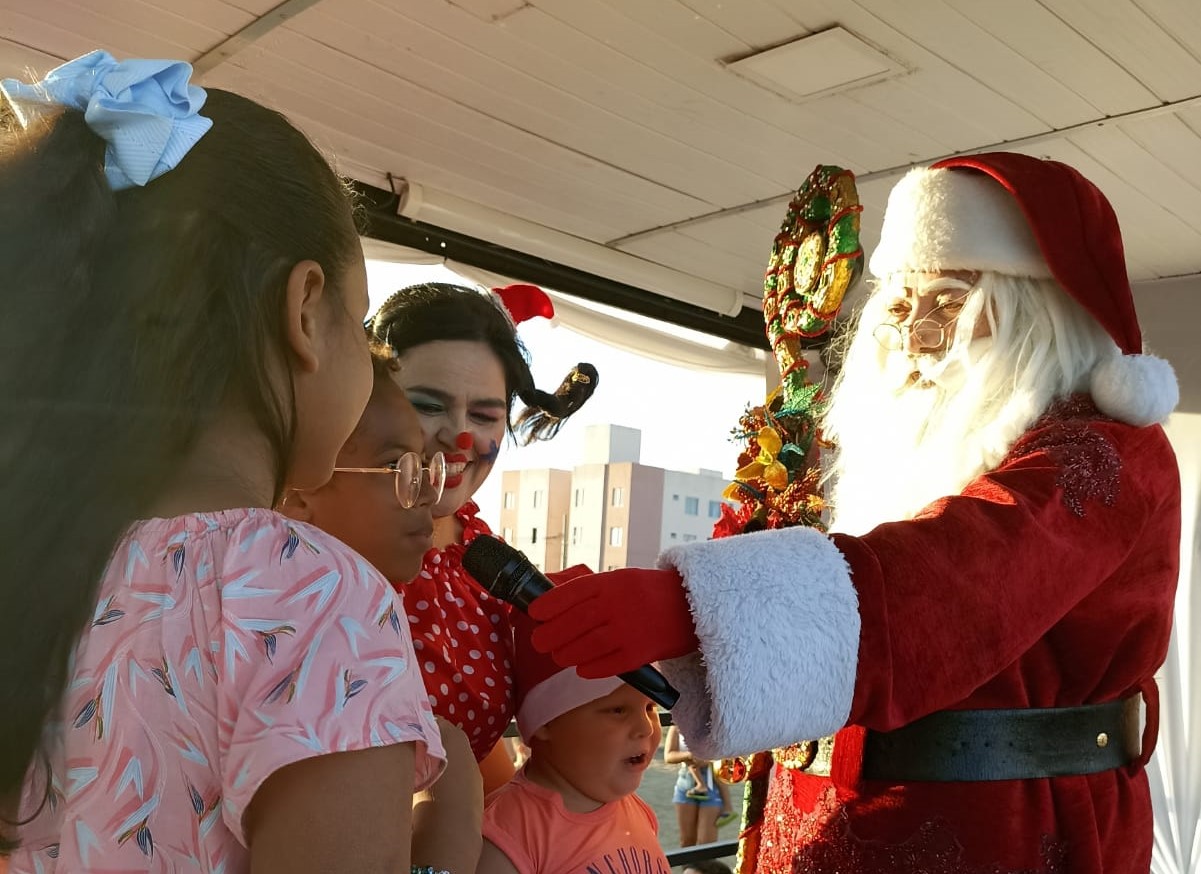 O momento mais esperado da tarde foi a chegada do Papai Noel. Com a chegada do trenó, crianças e adultos correram para registrar o momento. No palco, o Papai Noel cantou e interagiu com todos, trazendo mensagens sobre o período natalino.