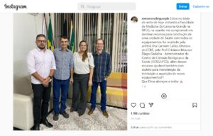 “Estive no início da noite de hoje visitando a Faculdade de Medicina de Campina Grande na UFCG, na ocasião me comprometi em destinar recursos para construção de uma unidade de Saúde com todos os equipamentos, fui recebido pela anfitriã Dra Carmem Catão, Diretora do CCBS, pelo Prof Cristiano Moura e Diego Gadelha – Administrador do Centro de Ciências Biológicas e da Saúde (CCBS/UFCG), além desses recursos ajudarei também com custeio para manutenção da instituição e aquisição de novos equipamentos”.