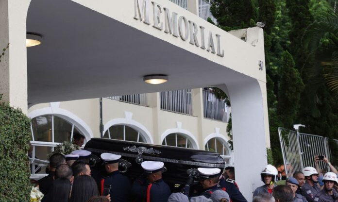 O corpo do Rei do Futebol, Pelé, foi sepultado na tarde desta terça-feira (3) no Memorial Necrópole Ecumênica, em Santos, em uma cerimônia reservada que contou apenas com a presença de familiares e amigos próximos.