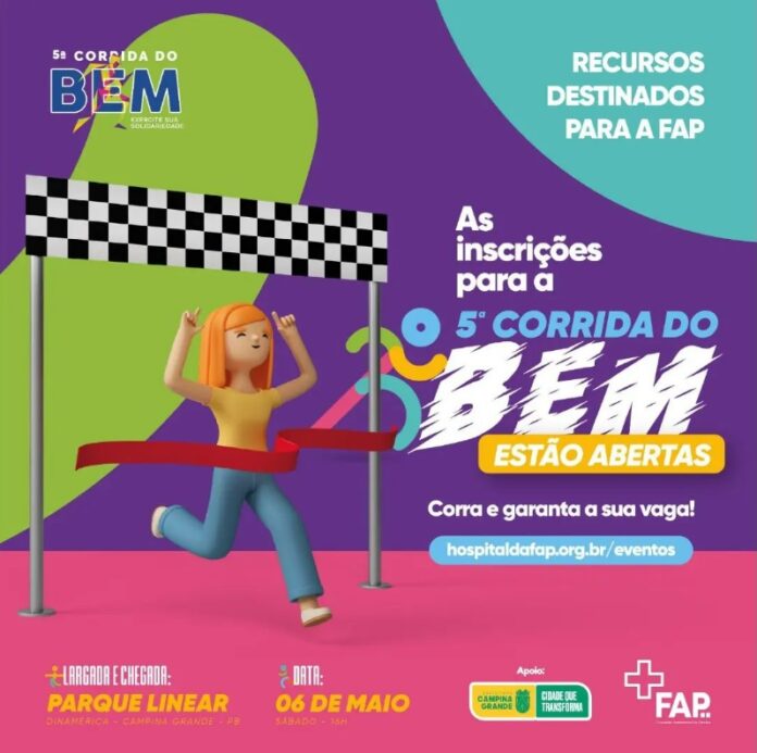 Estão abertas as inscrições para a 5ª edição da Corrida do Bem. O evento acontece em Campina Grande, no dia 6 de maio, com largada e chegada no Parque Linear Ivandro Cunha Lima. As inscrições custam R$ 70. Acesse a página do evento.