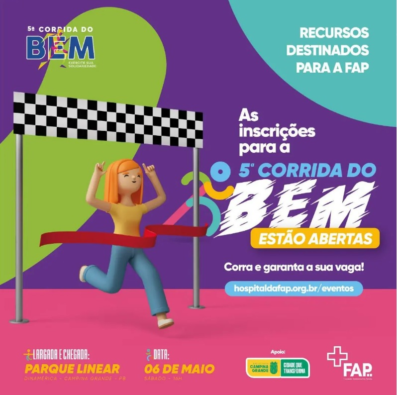 A Corrida do Bem é uma ação beneficente que vai arrecadar recursos para a construção da ala oncológica infantil da Fundação Assistencial da Paraíba (FAP) de Campina Grande. O projeto atua de forma solidária angariando apoios institucionais através do Poder Público e da mobilização da sociedade civil organizada, primando pela ética e transparência do planejamento a execução de suas ações beneficentes, sem fins lucrativos.