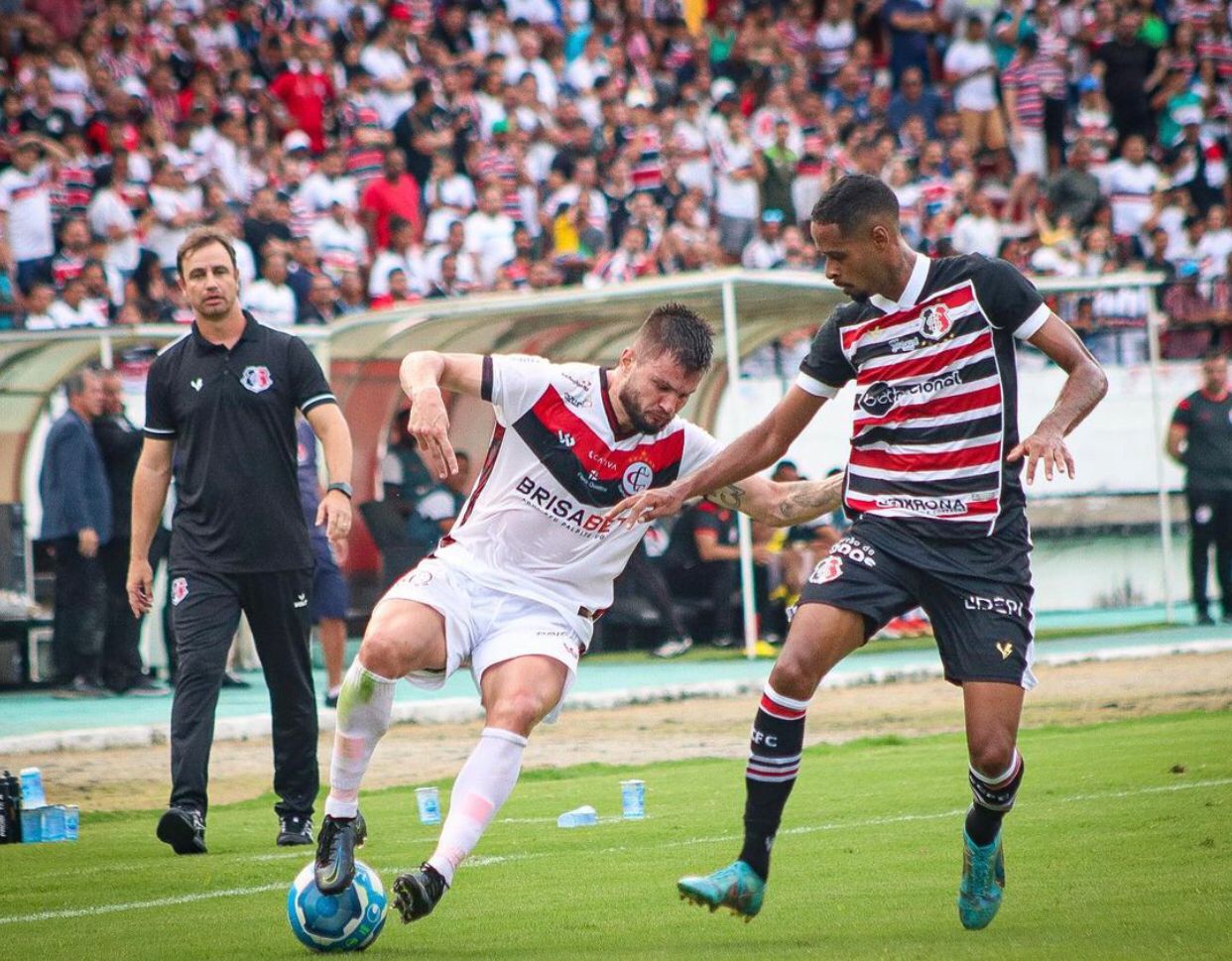 Apoiado pelos milhares de tricolores que foram ao Arruda, o Santa Cruz foi superior ao Campinense na etapa inicial. Apesar do clube paraibano ter a bola – principalmente no começo do confronto -, o time da casa era mais incisivo nas chegadas ofensivas. Mesmo que sem muito perigo. Com 17 minutos, o Tricolor já tinha visto Chiquinho e Nadson finalizarem duas vezes cada. Os visitantes só foram incomodar aos 20. Em chute firme de fora da área, Guilherme Escuro obrigou Michael fazer boa defesa.