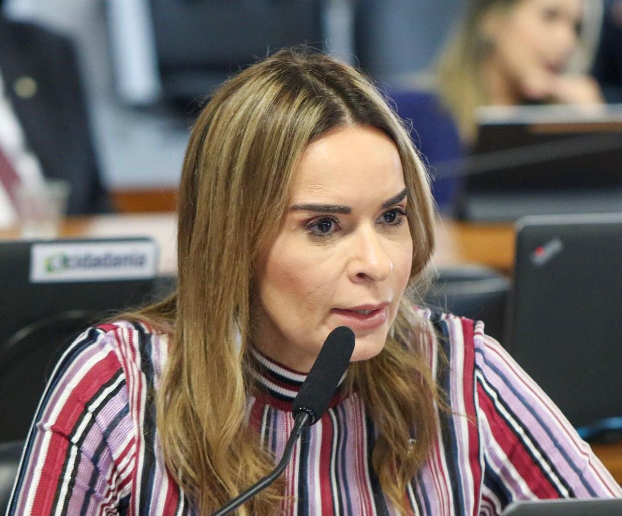 A senadora Daniella Ribeiro, presidente estadual do PSD, “desce do salto” em debate com o prefeito Bruno Cunha Lima, virtual candidato à reeleição e filiado ao partido (PSD).