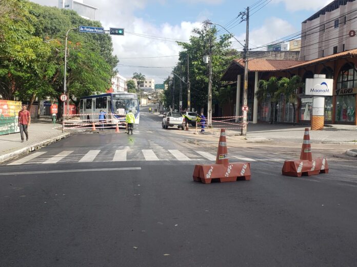 Fiscais de transporte e agentes de trânsito estão no local, e tão logo os serviços sejam finalizados, a via estará liberada para o tráfego normal de veículos.