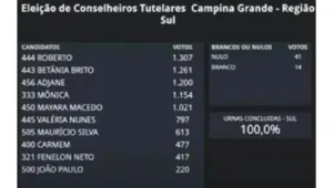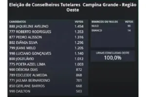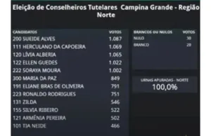 Veja abaixo o resultado da apuração por cada uma das quatro áreas de Campina Grande: