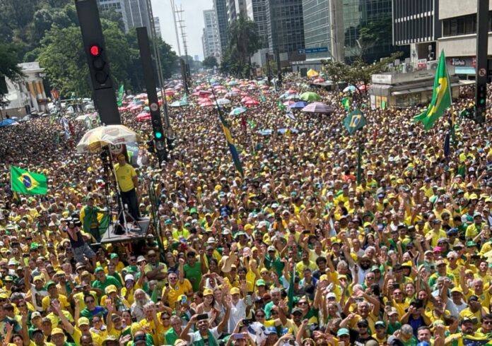 Apoiadores do ex-presidente Jair Bolsonaro se reuniram na tarde deste domingo (25) na Avenida Paulista, em São Paulo. Vestindo camisetas amarelas, portando bandeiras do Brasil e de Israel, eles chegaram ao encontro em ônibus com placas do interior de São Paulo e de outros estados.
