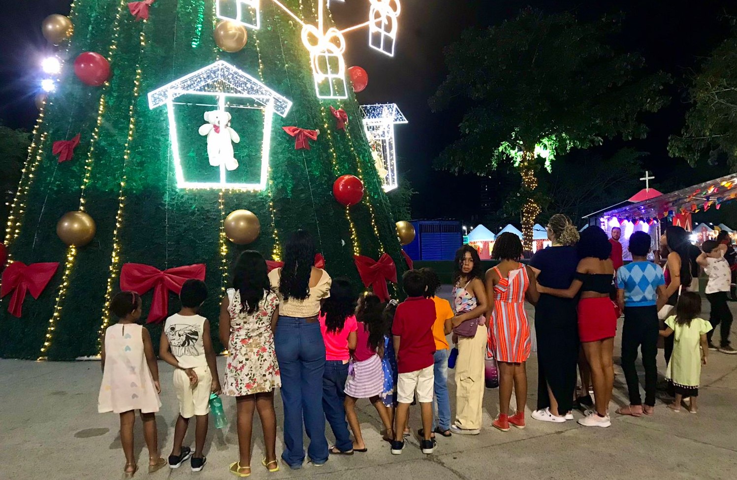 A noite desta quinta-feira, 26, foi de festa e muita alegria para cerca de 50 crianças e adolescentes assistidos pelas Casas da Esperança, 1, 2 e 4, da Prefeitura de Campina Grande. Os equipamentos são coordenados pela Secretaria de Assistência Social (Semas). Os grupos visitaram o polo do Natal Iluminado no Açude Velho, onde tiraram fotos na Árvore de Natal gigante e no túnel iluminado. Também visitaram a casa do Papai Noel e depois fizeram um passeio na Carreta da Alegria.