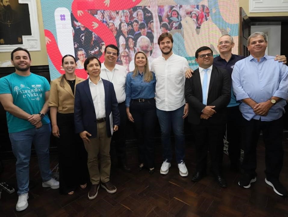 Representantes de cinco dos sete eventos do Carnaval da Paz participaram do momento. O coordenador do Crescer, Gustavo Lucena, da Igreja Católica; o pastor Euder Faber, responsável pela Consciência Cristã; o pastor Elton Wagner, do evento A Palavra Revelada; Dennis Medeiros, da Associação Municipal de Espiritismo de Campina Grande (Miep) e Pedro Cézar, do E-Além
