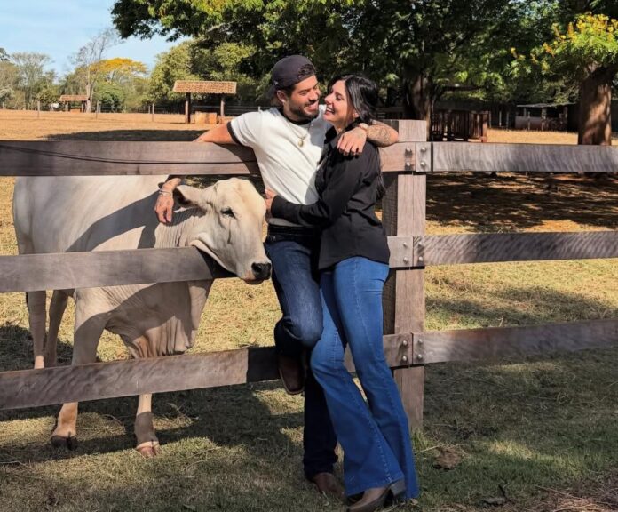 O clima de romance entre Zé Felipe, 27 anos, e Ana Castela, de 21, segue deixando os fãs animados. Na tarde desta quarta-feira (08), os artistas compartilharam duas fotos em que aparecem abraçados na fazenda, ao lado de uma vaca.