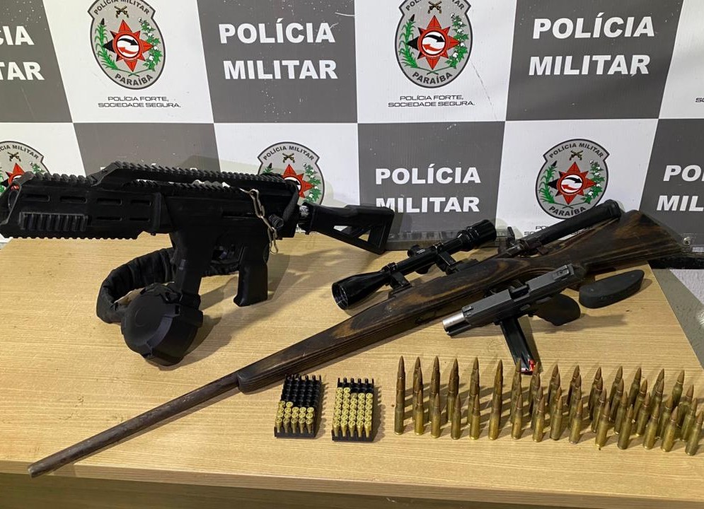 A Polícia Militar apreendeu um fuzil, uma submetralhadora, uma pistola, munições e porções de maconha e cocaína durante uma ação realizada na noite desta sexta-feira (28), no bairro Recanto do Poço, em Cabedelo, na Grande João Pessoa. O material estava dentro de uma residência onde um ex-presidiário cuidava de uma criança de 11 anos.