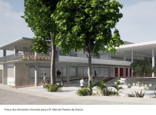 A área total da primeira etapa da obra equivale a quase 3 mil m², sendo cerca de 648 m² de área coberta, composta por estrutura metálica em grelha, que proporciona sombreamento, conforto ambiental e reforça a atmosfera tradicional da feira, em uma linguagem contemporânea. Atualmente, o local é ocupado por edifícios em ruínas e, após a requalificação, terá usos distintos voltados à convivência, cultura e gastronomia.