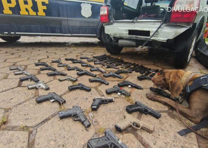 Mais de 30 pistolas e dezenas de carregadores foram apreendidos pela Polícia Rodoviária Federal (PRF), na terça-feira (20), durante fiscalização na Rodovia Presidente Dutra (BR-116), no Sul Fluminense. O destino do material seria o Complexo do Alemão, na Zona Norte do Rio. A ação faz parte da Operação Atena , que reforça o policiamento nas rodovias federais do Rio de Janeiro .