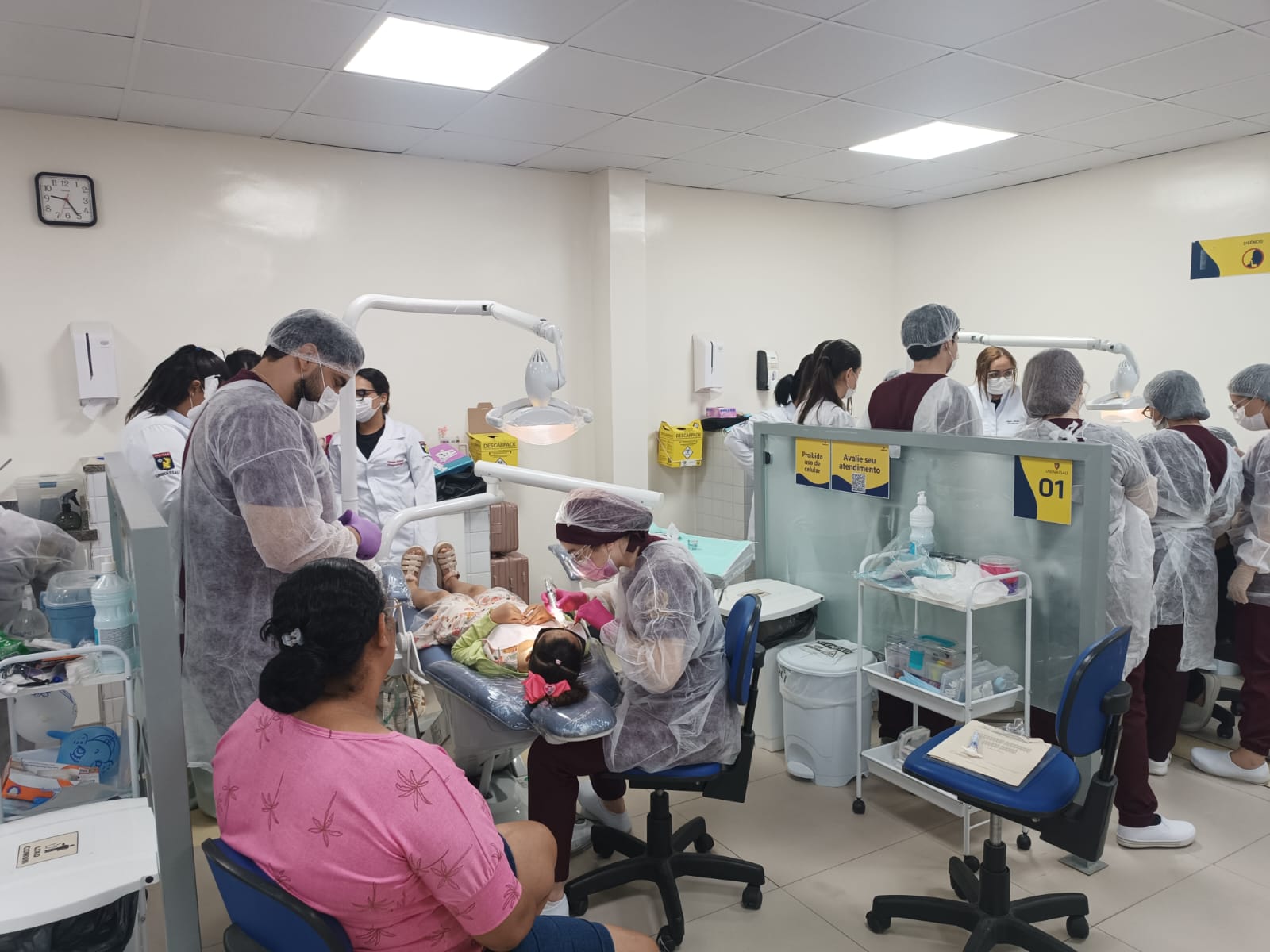 Cerca de 30 estudantes de Odontologia da instituição de ensino superior participaram da ação, que foi coordenada pela Professora Mestra Thaynná Barboza, docente de Odontologia e Odontopediatra da clínica-escola. Durante o mutirão, foram ofertados os serviços de limpeza, avaliação e restauração. A ação também contou com a presença de estudantes do curso de Fonoaudiologia, que ofereceram orientações aos pais e responsáveis.